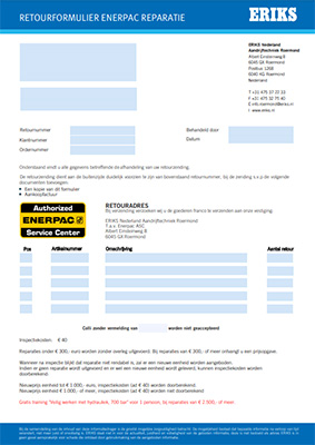 - Download het Enerpac reparatieformulier (hiernaast)
