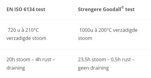 De Goodall® Inferno slangen (incl. Goodall® DuraCrimp® koppelingen) worden gedurende 1000 h met verzadigde stoom getest. Belangrijk hierbij is dat de slangen tijdens rustperiodes niet worden gedrained (= aflaten van consatiewater).